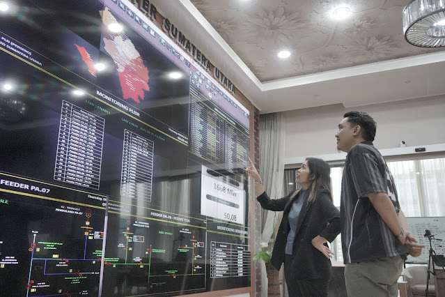 Petugas Unit Pelaksana Pengatur Distribusi Sumatera Utara (UP2D SU) terus memonitor progres percepatan pemulihan bertahap pasca gangguan transmisi melalui Distribution Control Center Sumatera Utara (5/6).